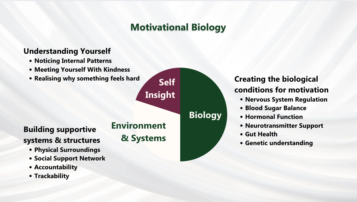 Think of it as a two-for-one deal: by focusing on what fuels motivation biologically and mentally you unlock the energy, consistency, and emotional regulation that makes everything else feel easier.